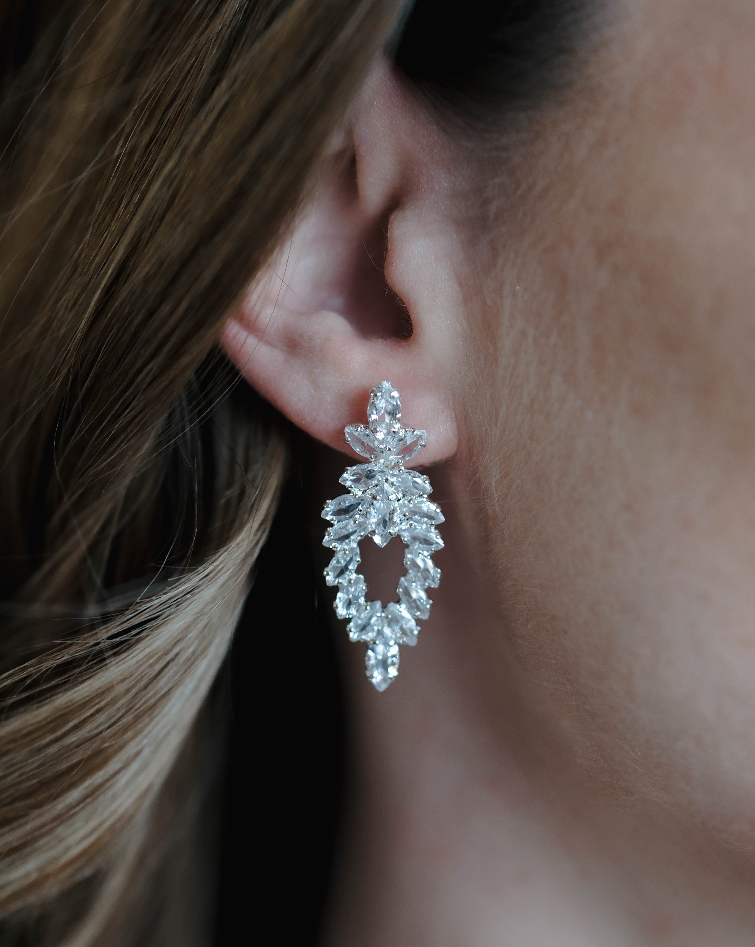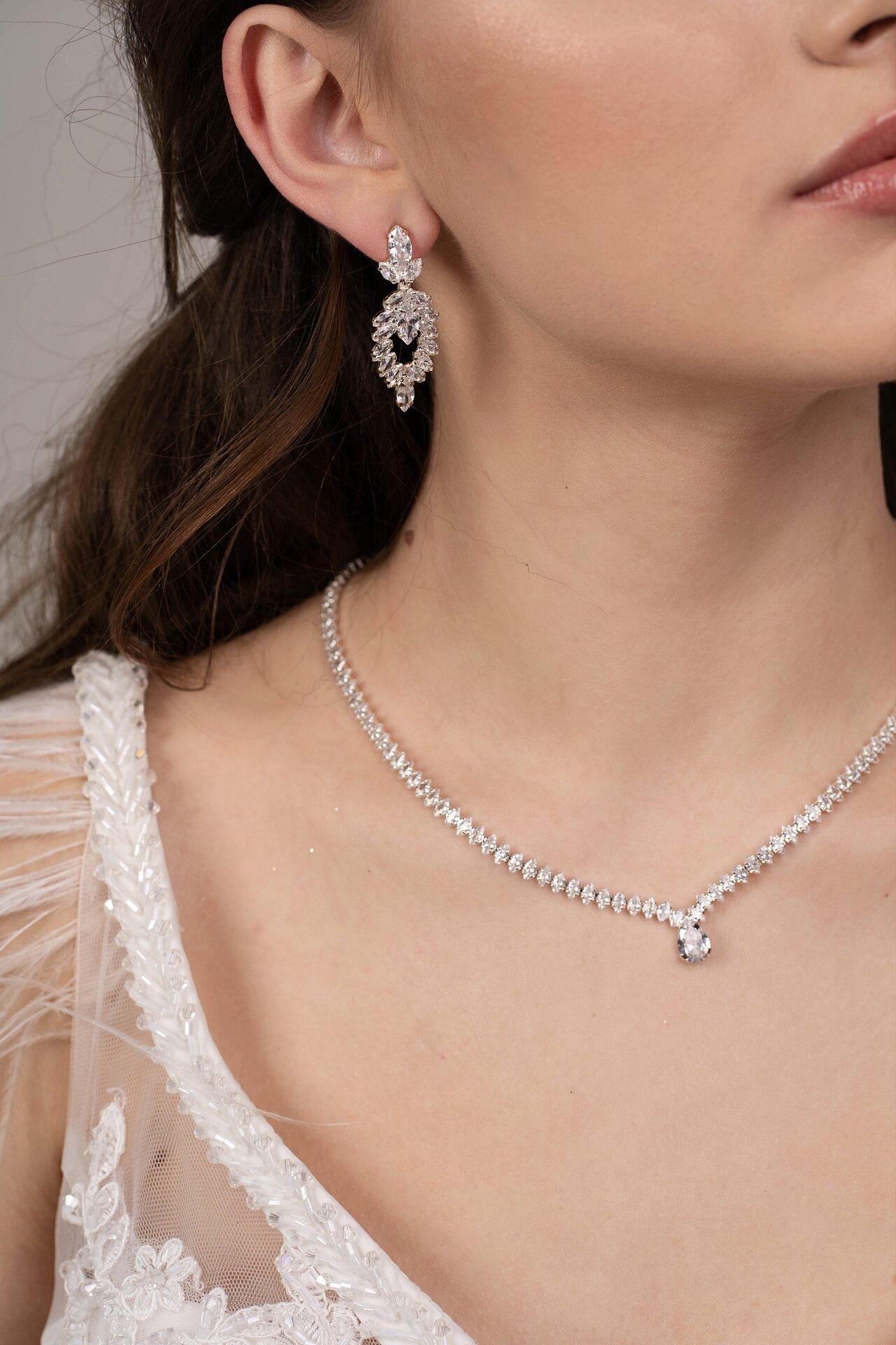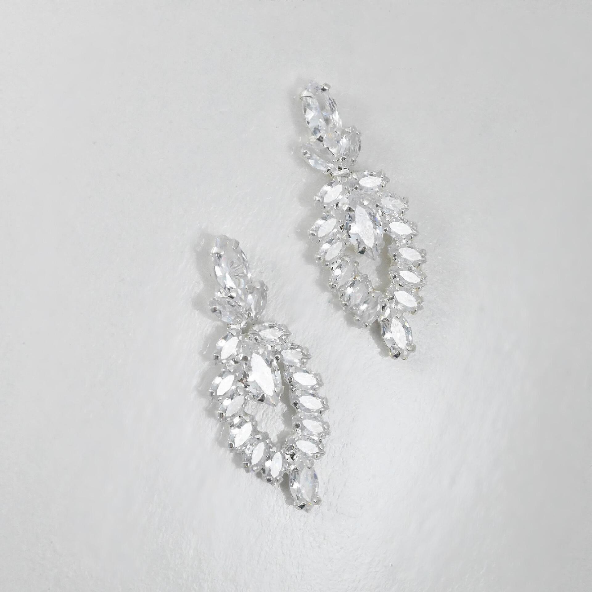 Обеци с кристали Цирконий. Подходящи за всякакви поводи. Предлагат се и в други цветове. Ръчно изработени от висококачествени материали. Закопчават се с винт. Дължината им е около 3 см.