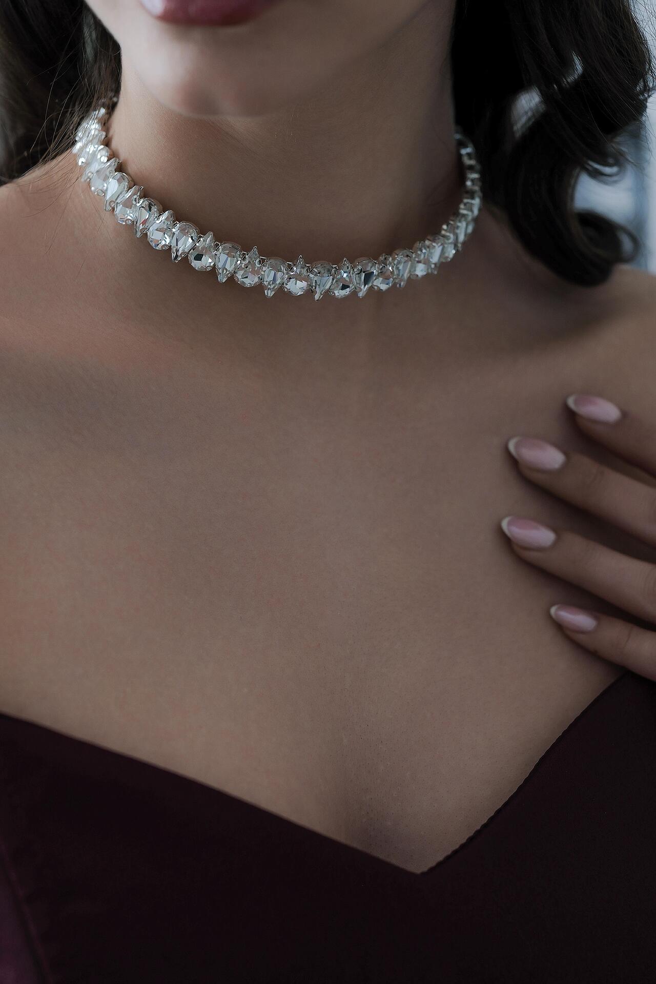 Ръчно направено колие с нанизани капковидни камъни. Камъните са стъклени и висококачествени. Блестящо допълнение към вашата визия.