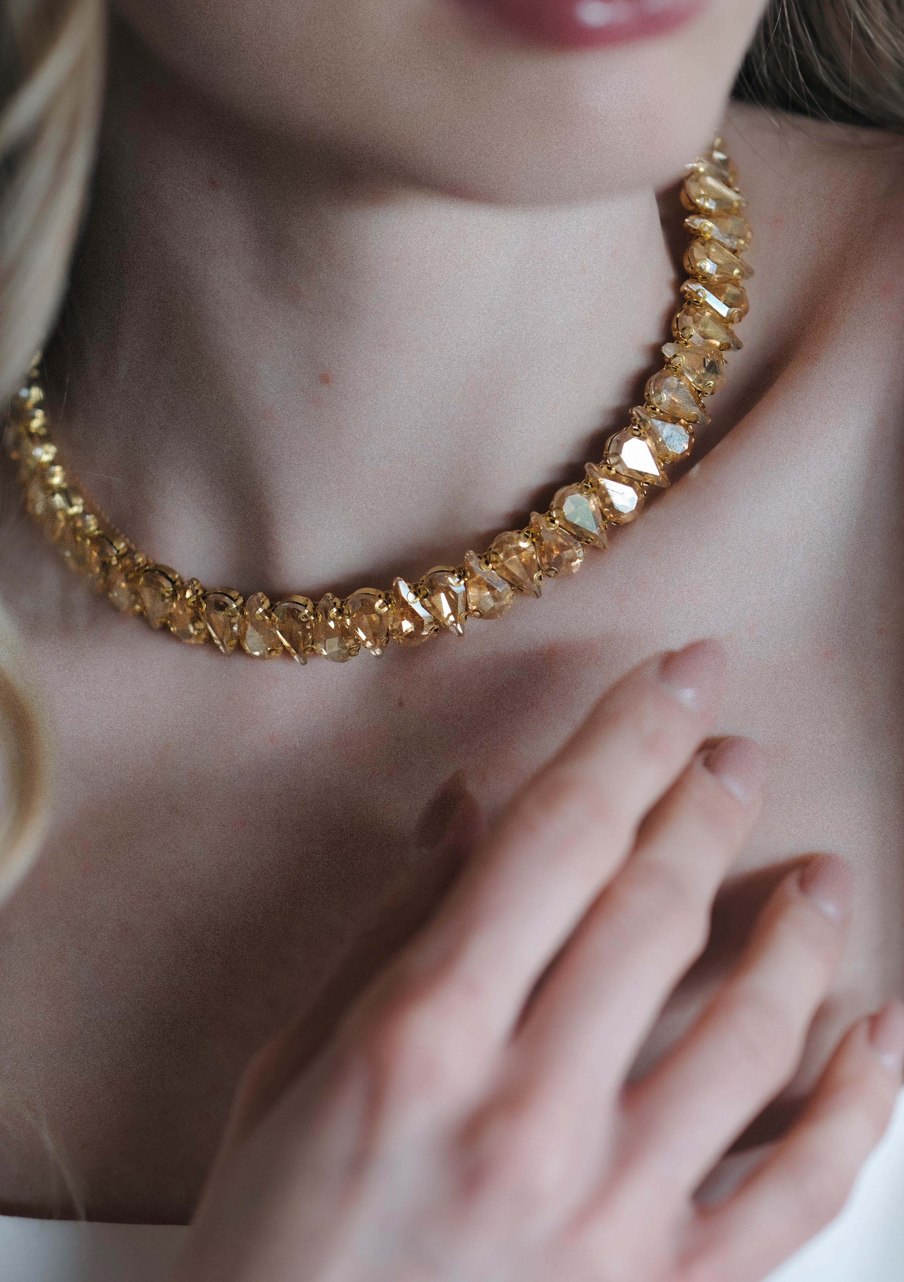 Ръчно направено колие с нанизани капковидни камъни. Камъните са стъклени и висококачествени. Блестящо допълнение към вашата визия.