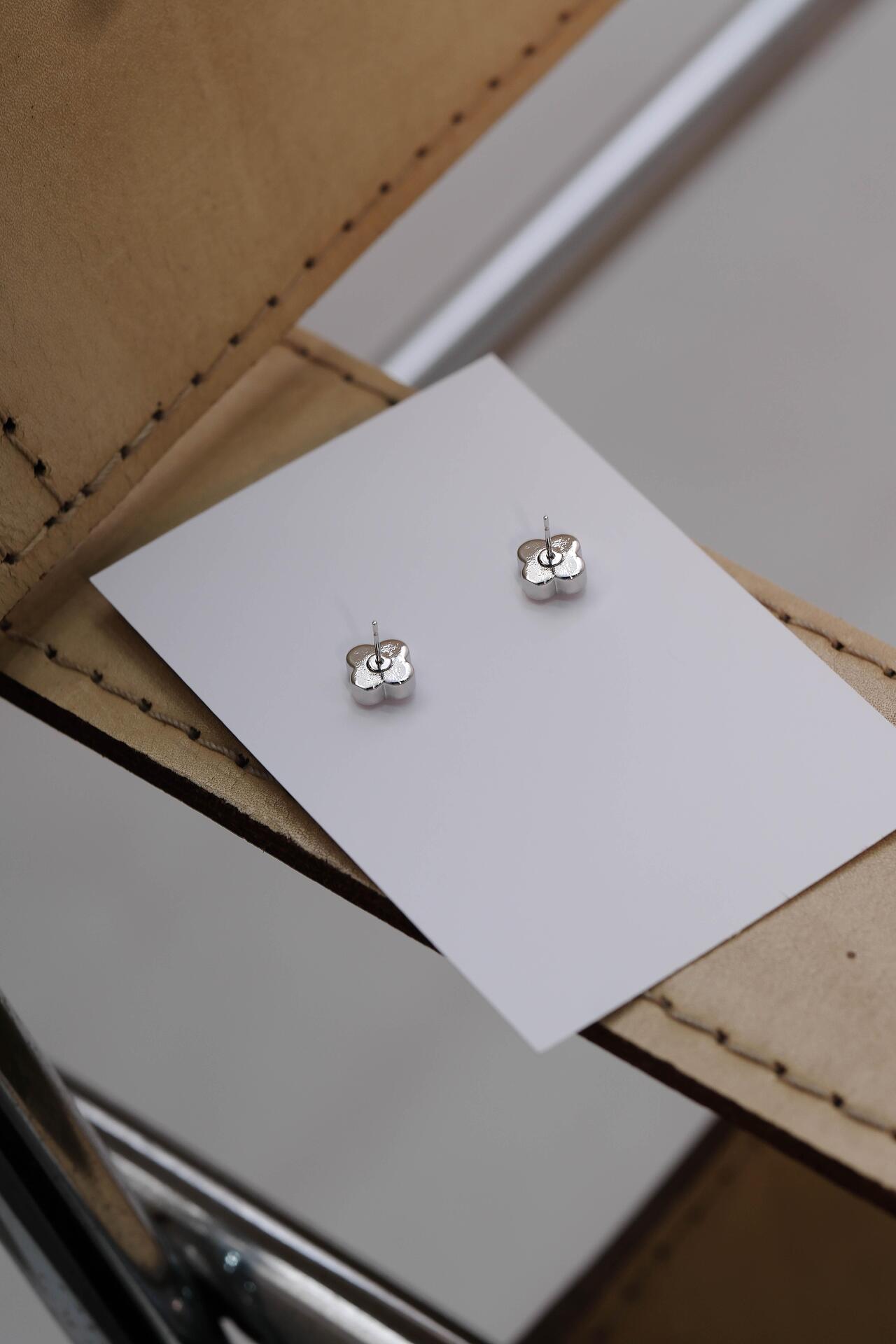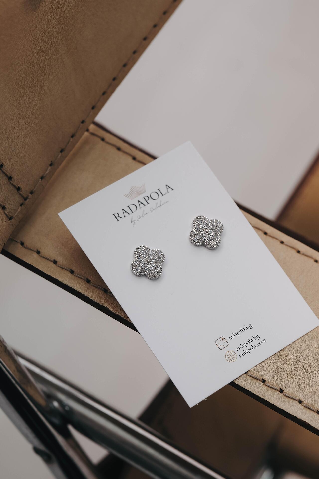 Сребристи обеци детелинки с винт