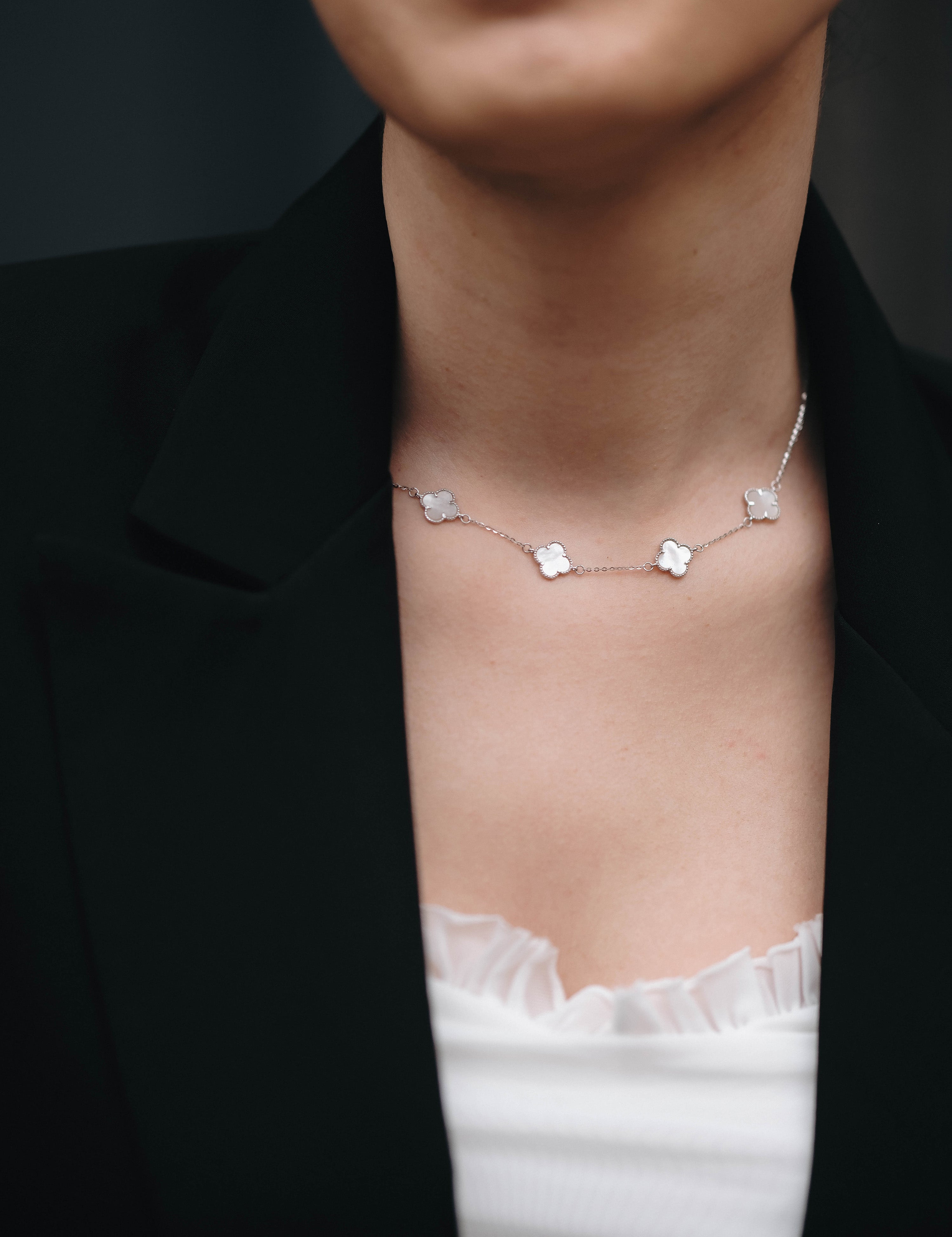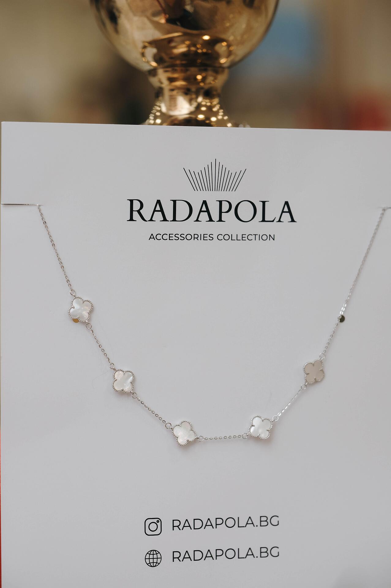 Сребристо колие с детелинки в черно. Размерът може да се регулира от закопчалката. Изключително красиви.
