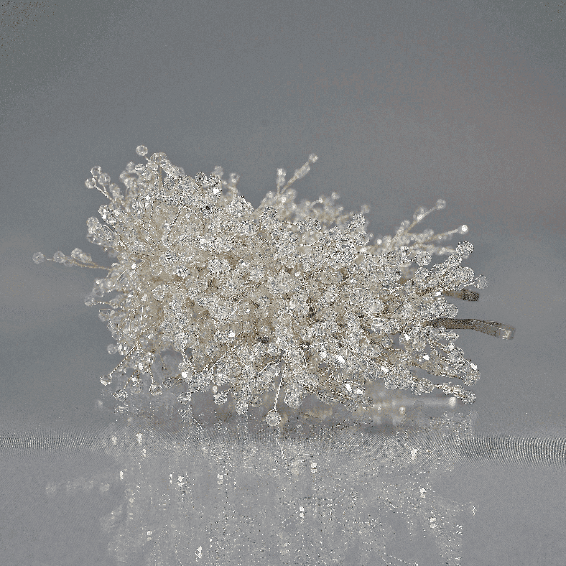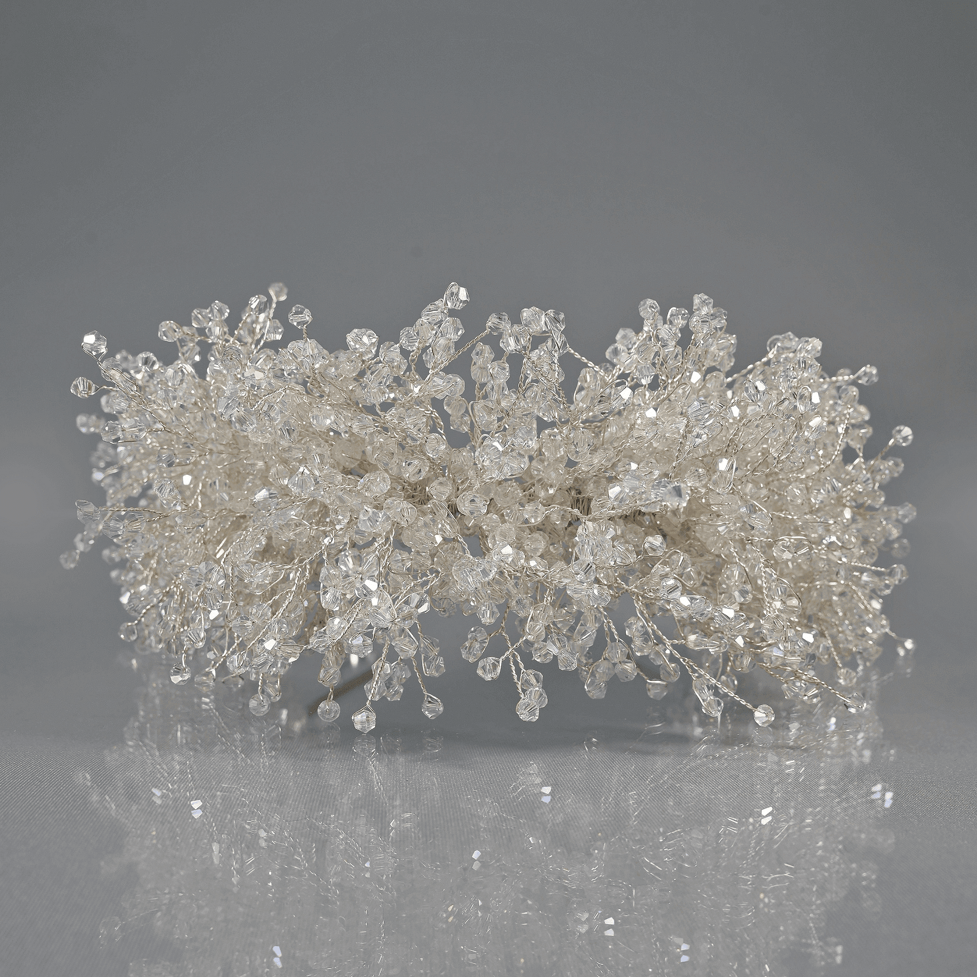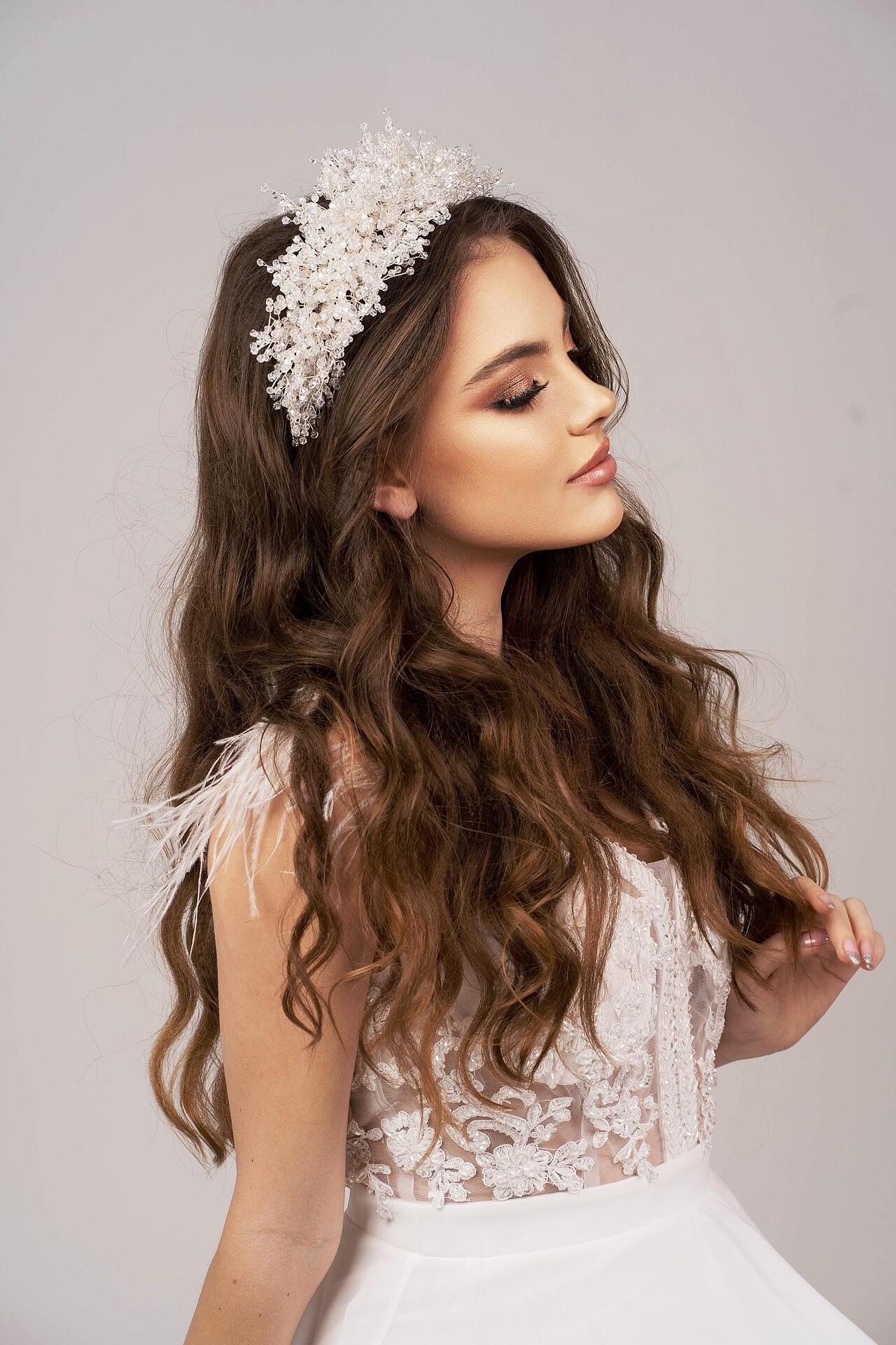 Корона с мъниста, подходяща за вашия специален повод. Ръчно изработена от висококачествени материали. Размерът може да бъде регулиран спрямо вашата глава, за да бъде удобно за всеки. Висока е около 6 см.