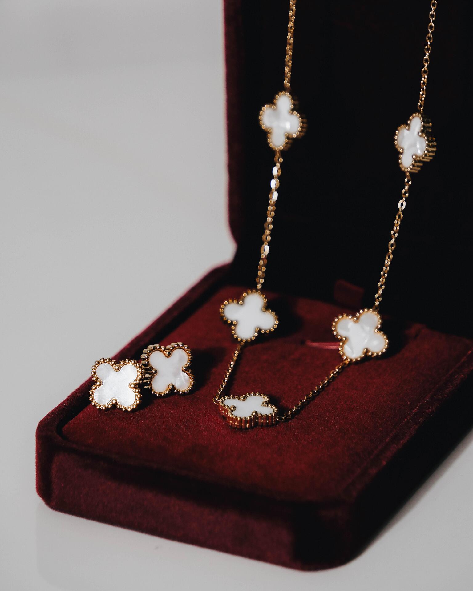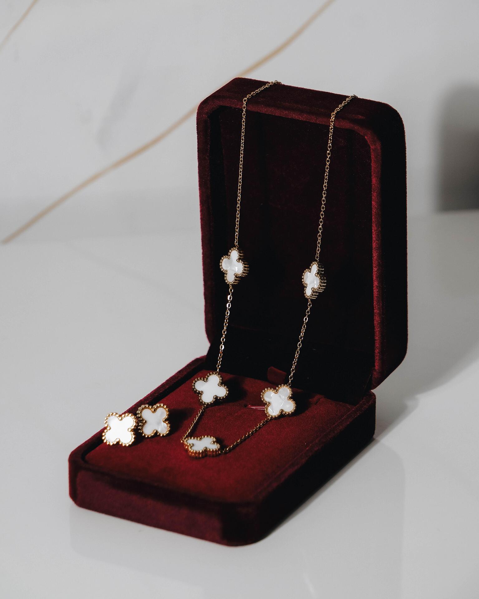 Комплект от обеци и гривна във форма на детелинки. Размерът може да се регулира от закопчалката. Изключително красиви. Изработени от стомана.