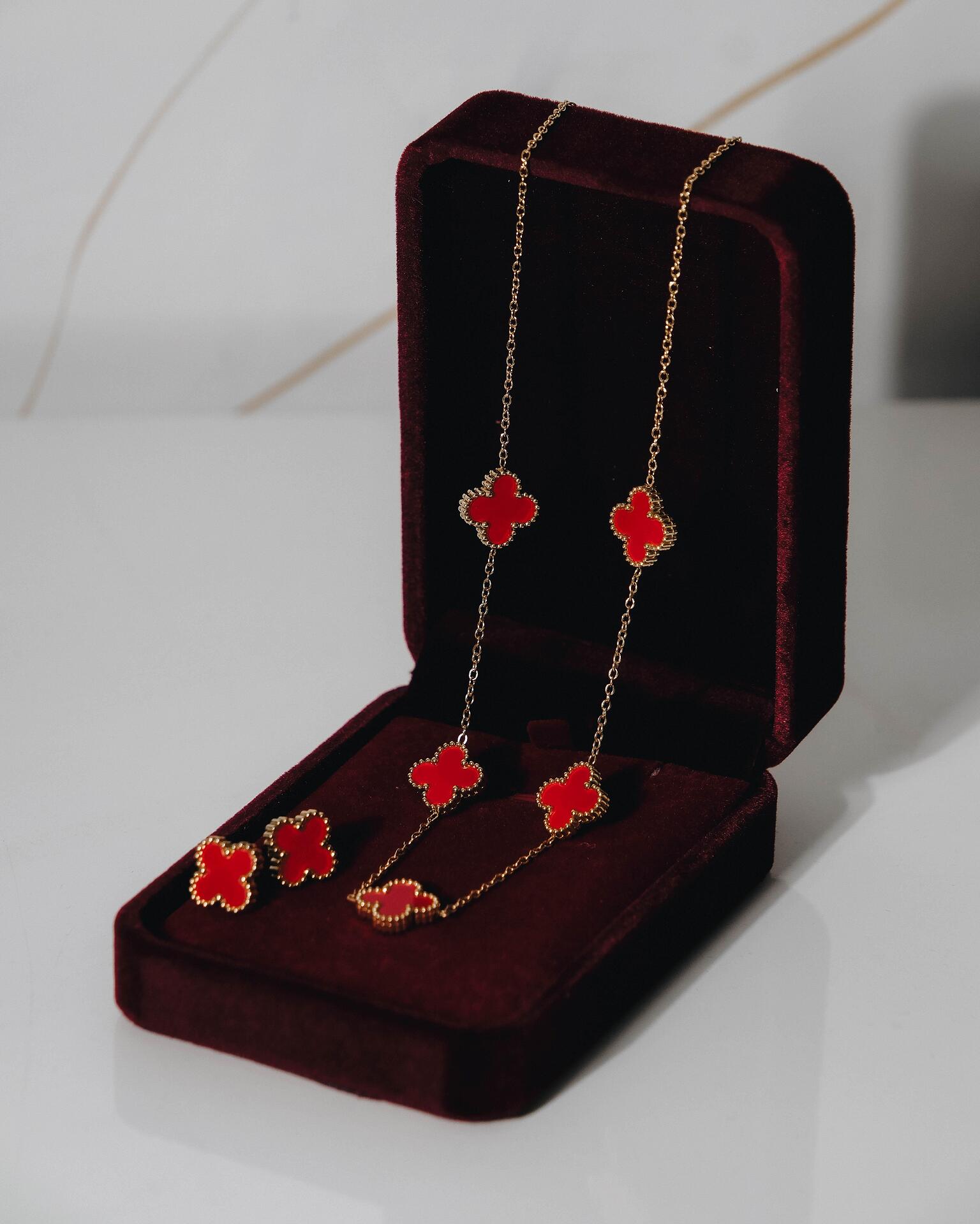 Комплект от обеци и гривна във форма на детелинки. Размерът може да се регулира от закопчалката. Изключително красиви. Изработени от стомана.